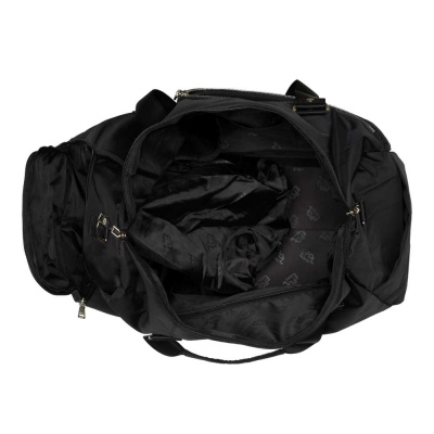Дорожная сумка тканевая Epol-bags 6016-12 черная – подходит как для мужчин, так и для женщин, прекрасный вариант для обеспечения себя всем необходимым в поездке, путешествии. Множество карманов позволят расположить необходимые вещи в идеальном порядке. Длина по дну – 50 см. Толщина – 24 см. Высота – 29 см. Одно основное отделение закрывается на двойную молнию. На передней стенке карман на молнии, по боковым сторонам карманы, на обратной стороне карман на змейке. Комплектуется съемным плечевым ремнем, который регулируется по длине. Выполнена из плотного нейлона премиум качества, подкладка с логотипом. Фурнитура цвета никель.